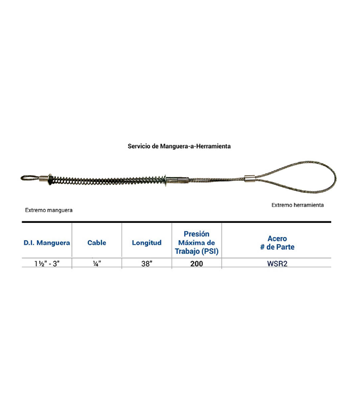 Cable de seguridad 1/4″ D.I. mang. de 1-1/2 a 3″ x 3/8″ long. WSR2 Dixon servicio de manguera a herramienta, Paq. de 2 pzas