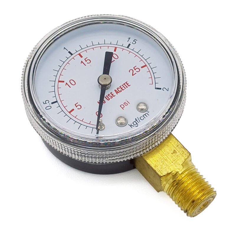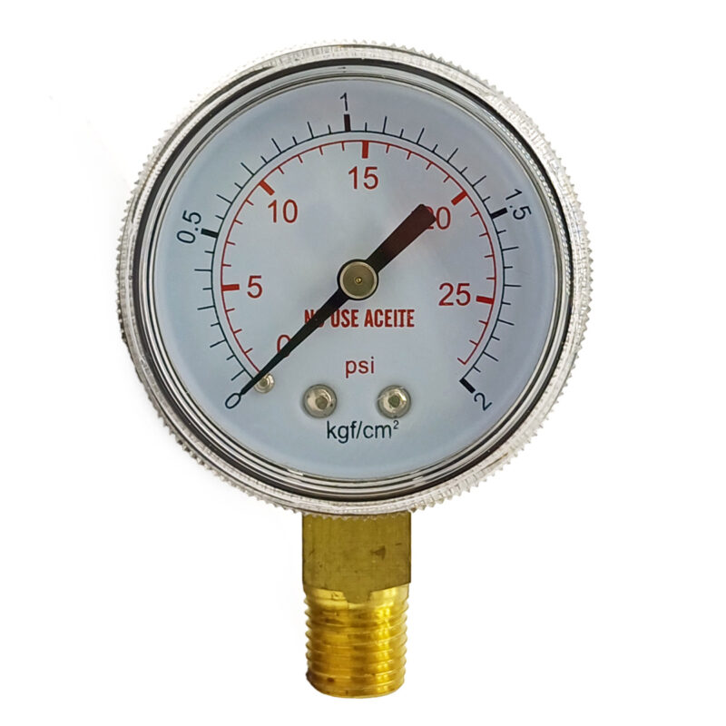 Manómetro Dewit Mod. 11, bourdon de bronce inferior 1/4 pulg. NPT, Carátula 2 pulg. presión 2 Kgf/cm2, 30 PSI, seco