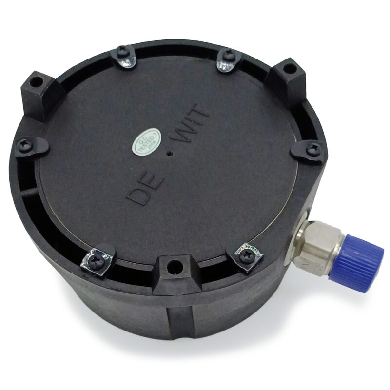 Manómetro Dewit Mod. 2000CB, bourdon de bronce, inferior 1/4 pulg. NPT, Carátula 2.5 pulg, presión 3 Bar, 43 PSI, con glicerina